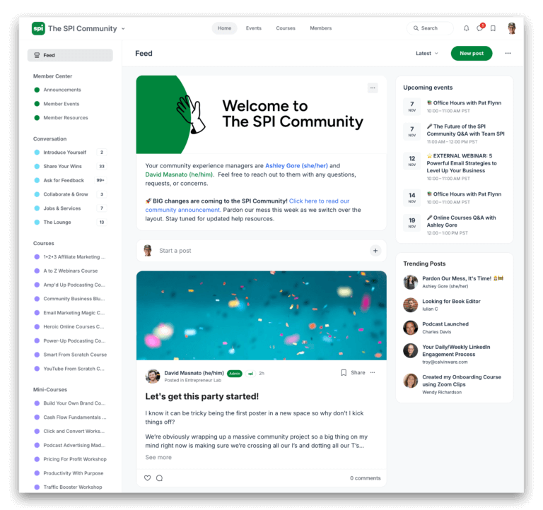 The SPI Community launched in 2020 to be a welcoming place where new entrepreneurs can connect with like-minded individuals, access a variety of training courses, and receive the feedback, support, and accountability needed to grow their businesses to full-time income.
